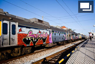 O Expresso online de hoje publica hoje aqui um artigo sobre graffitis nas carruagens da CP, os custos da limpeza, a reincidência permanente, a obstrução da visão dos passageiros sobre a paisagem.