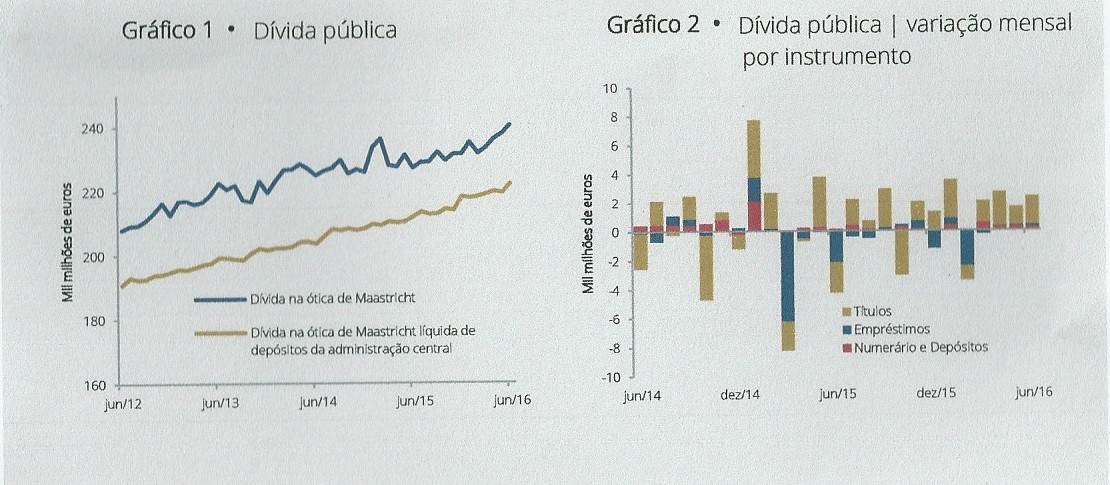 "No final do primeiro semestre de 2016, a dívida pública situou-se em 240,0 mil milhões de euros (Gráfico 1), aumentando 2,4 mil milhões de euros relativamente